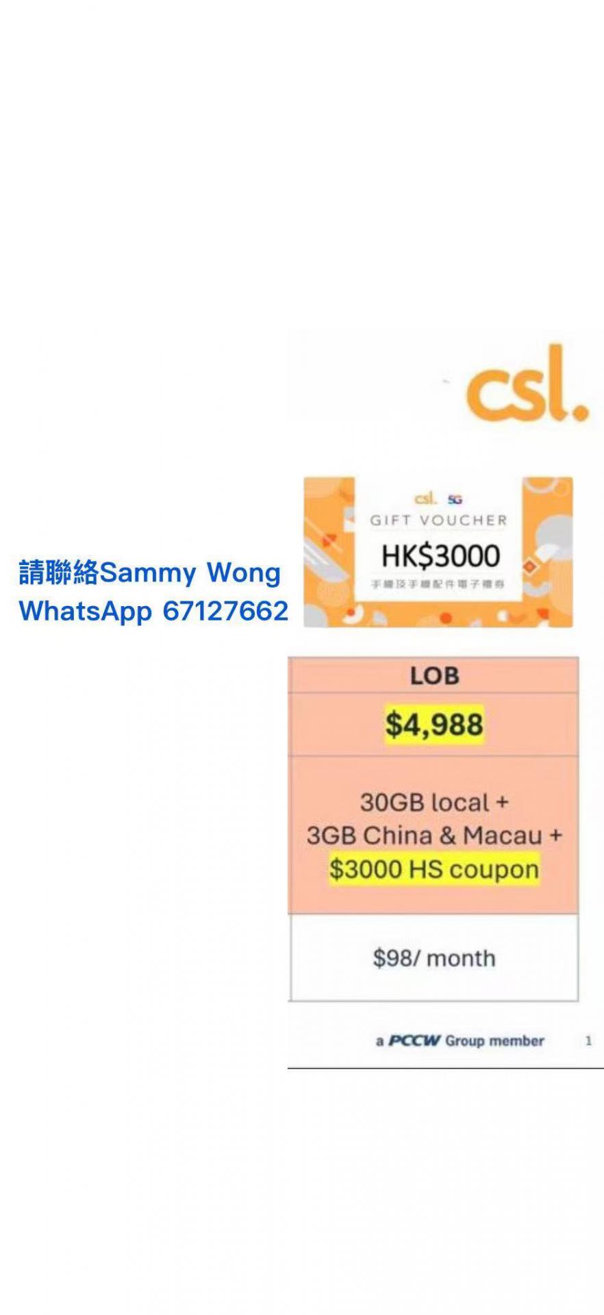 $4988簽24個月(一次性付款)立刻有$3000購買手機(任何型號)coupon 即時回贈返