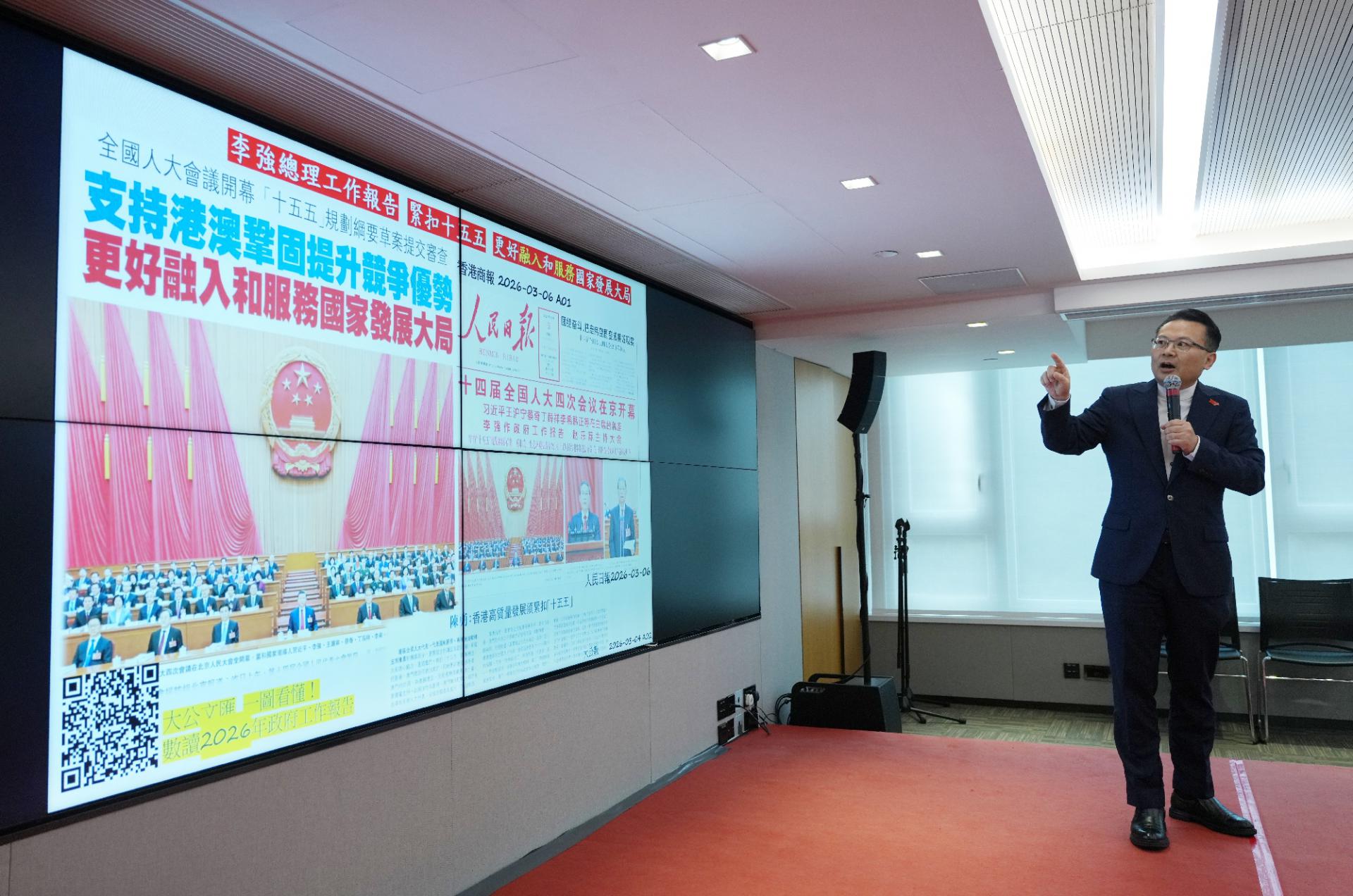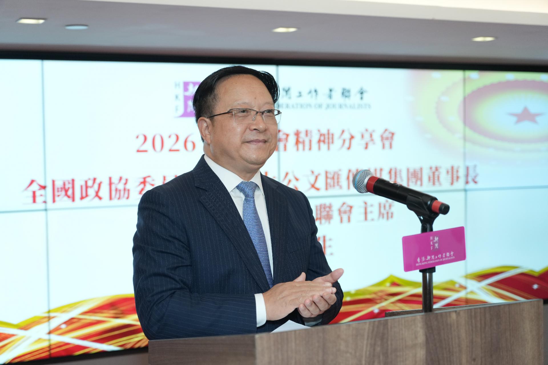 他指出,香港新聞界應主動作為,深入學習領會全國兩會精神,充分發揮聯繫廣泛、洞察敏銳、傳播力強的優勢,聚焦國家「十五五」規劃落實與香港五年規劃編制工作,全方位、多角度、立體化傳播國家發展的光明前景和香港發展的良好機遇。