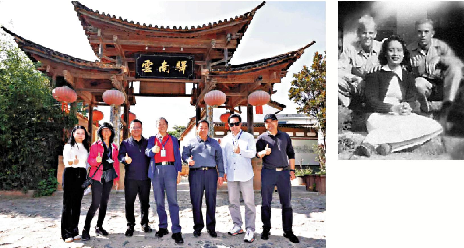 左图:香港新闻联「重走滇缅公路」媒体团到访云南驿。\大公报记者黄艾力摄;右图:黄欢笑(中)与美军战士合影。黄欢笑1912年出生于广东新会,父母都是普通的商人。1916年她移居澳门,求学期间目睹许多女孩早早嫁人的悲剧,因此不愿循旧习俗早早出嫁,而是坚持在香港读完中学并考入香港玛丽医院高等护士学校,毕业后被聘为「英国皇家护士协会」的会员,成为一名护士。