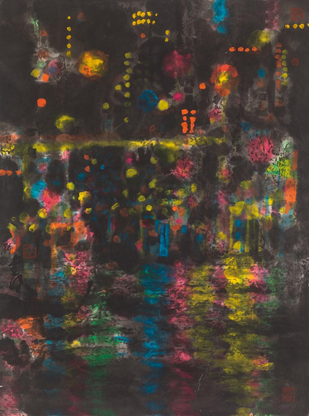 时至今日,林天行的画风被评为不断创新,画面立体饱满,没有留白,结构分明,平面有纵深,光影对比令画意空灵,色彩艳丽不俗气!林天行 「夜 ·香港」画展正在中环「明画廊」举行,每日都吸引大批粉丝前往。璀璨的香港夜景色彩缤纷,诗情画意,是这个国际都市的符号,林天行用画笔定格这符号,真好!真美!