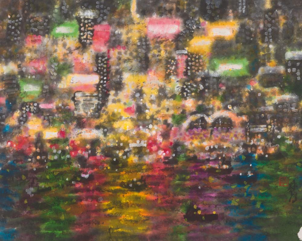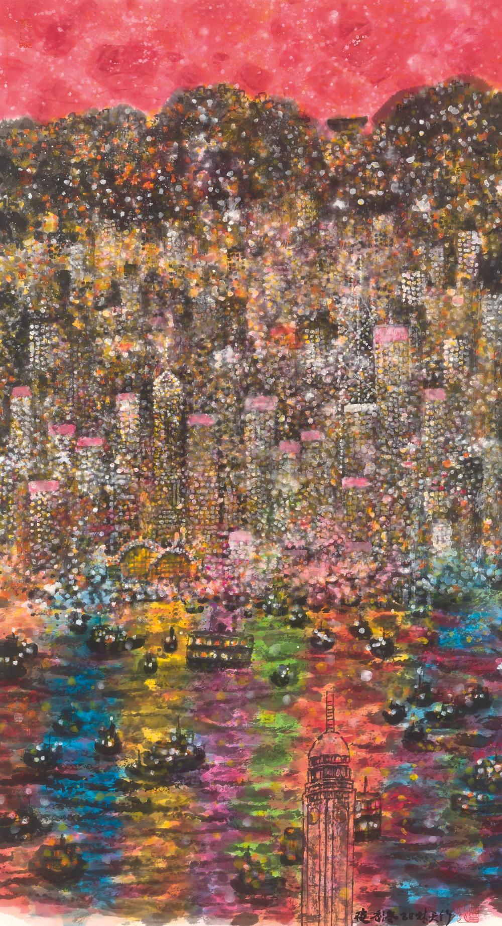 港岛宝云道是世界十大夜景之一,俯瞰高楼林立的豪宅延至维港的斑斓灯光,港人生活真真切切,这幅浮动的美妙被香港美术协会主席林天行用画笔定格,他一口气创作了主题「夜·香港」画展正在中环举行。